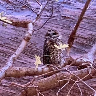 Boulder, where we stayed at the Boulder Mountain Lodge. Our first exploration there was on the Burr trail to a slot canyon, jaw-dropping awesome with slick, red rock walls. That is where we saw an endangered Mexican Spotted Owl, The whole trail is spectacular through red canyons. Another, very different geology found after a long, washboard dirt road, is Devil’s Garden, with hoodoos of eroded rock pillars, spires and domes.